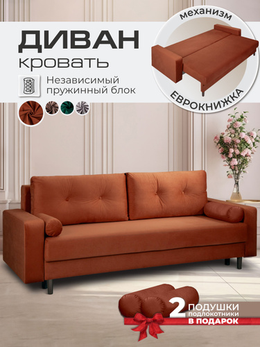 Диван-кровать Кромма "Орстен", раскладной, независимый пружинный блок/красно-коричневый vita032
