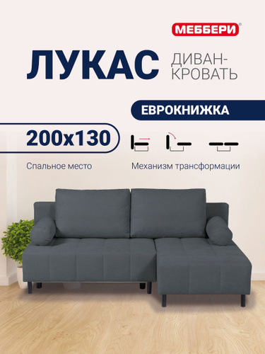 Меббери диван-кровать раскладной угловой Лукас, механизм Еврокнижка, 196*86*130, темно-серый (велюр Omega 27)