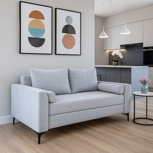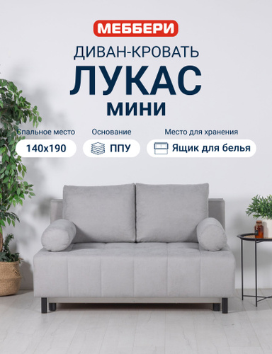 Меббери Диван-кровать раскладной прямой Лукас мини, с ящиком для хранения, размер 144*110*88 см, механизм еврокнижка, светло-серый (велюр Omega 29)