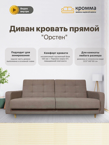 Диван-кровать раскладной прямой Лукас, механизм Еврокнижка, 196*86*88, коричневый ( рогожка, Kiton 10)