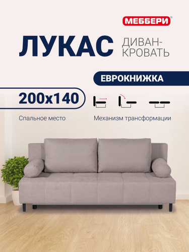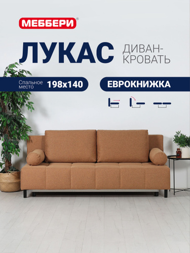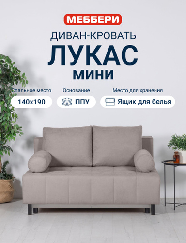Меббери Диван-кровать раскладной прямой Лукас мини, с ящиком для хранения, размер 144*110*88 см, механизм еврокнижка, светло-коричневый (велюр Omega 04)
