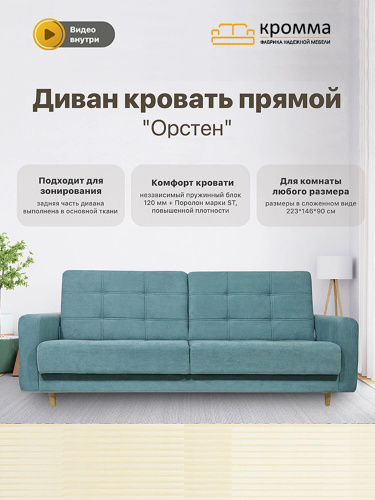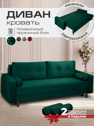 Диван-кровать Кромма "Орстен", раскладной, независимый пружинный блок/Светло-зеленый vita020