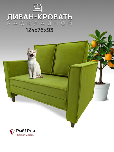 Диван Кровать 124*76, Спальник 100*190 Зеленое яблоко велюр, Токио на деревянных ножках
