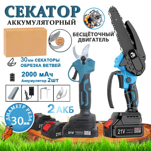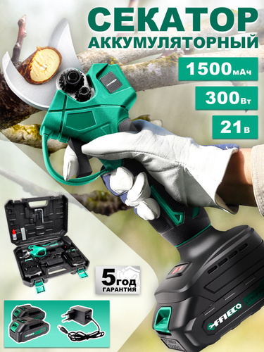 Секатор аккумуляторный 2 АКБ электросекатор садовый ручной сучкорез электрический в защитном кейсе + перчатки