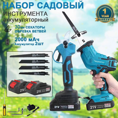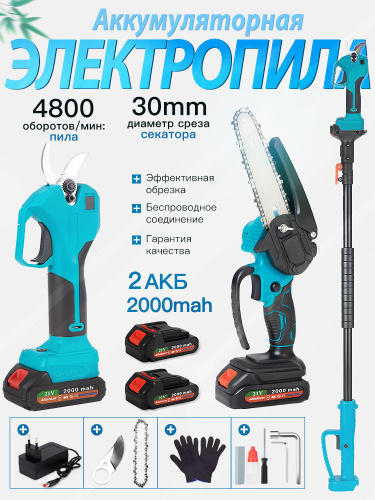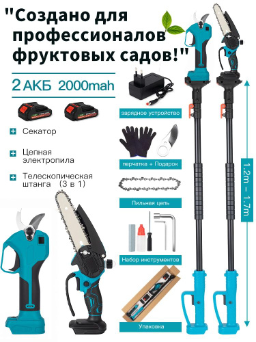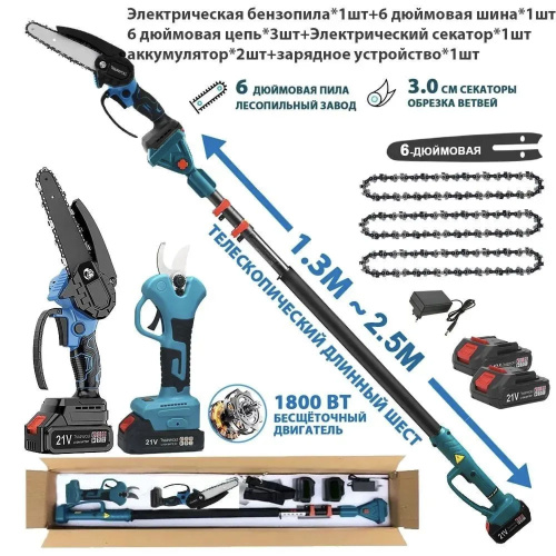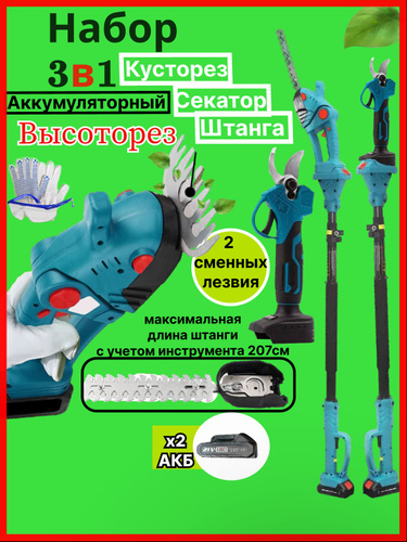 Аккумуляторные садовые ножницы+секатор кусторез высоторез 2 АКБ+телескопическая штанга удлинитель