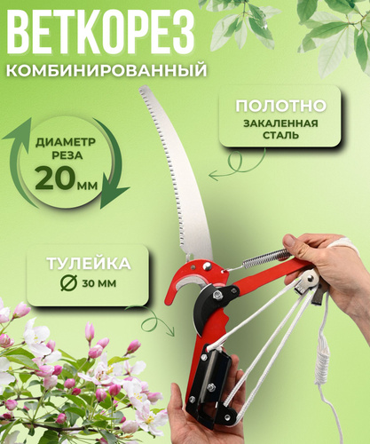Секатор СУЧКОРЕЗ садовый Инструмент ручной для дачи и сада Высоторез НОЖНИЦЫ для обрезки деревьев Штанговый с Пилой и шнуром 010150