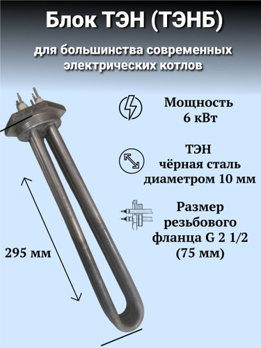 Блок ТЭН (ТЭНБ) для электрического котла 6,0 кВт (ТЭН-черная сталь диаметром 10 мм)