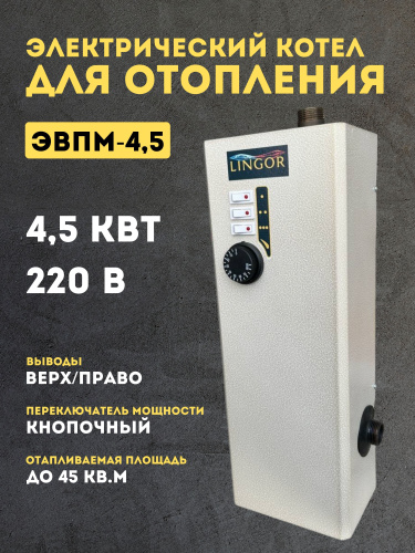 Котел электрический (электрокотел), ЭВПМ 4,5 кВт, 220 В (подключение верх/право)