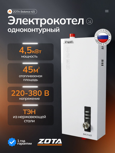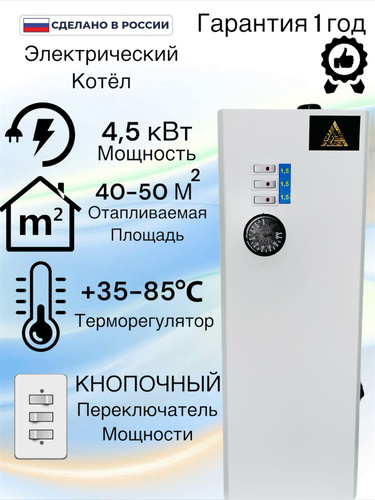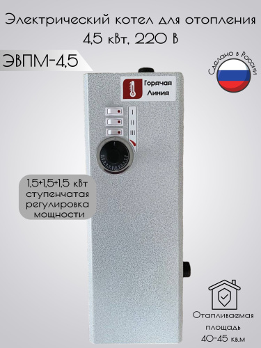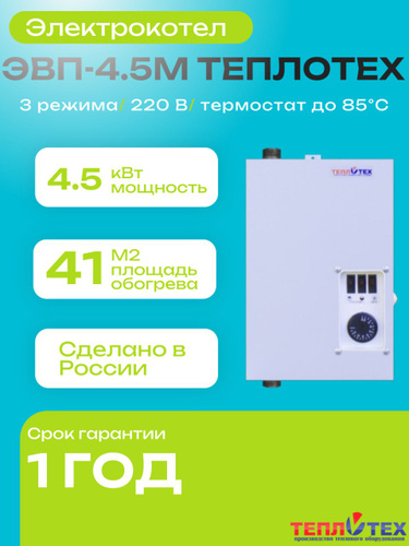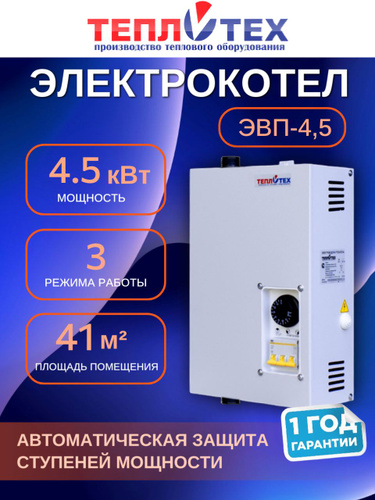 Котел электрический Теплотех ЭВП-4,5 М, 4.5 кВт, для отопления дома 41 м , 220 В