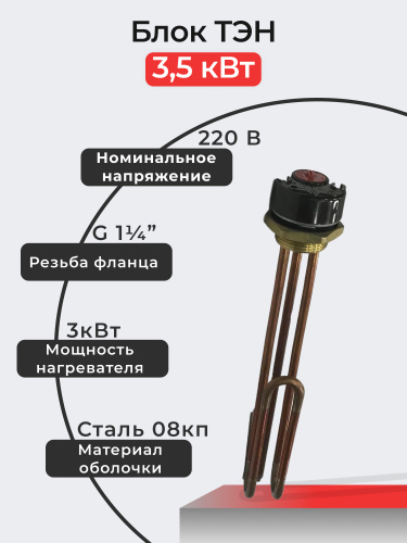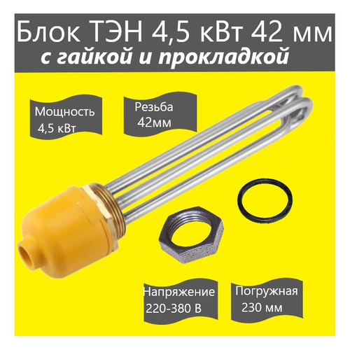 Блок ТЭН 4,5 кВт 42мм с гайкой и прокладкой для электрических котлов