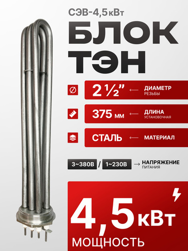 ТЭН для электрокотла 4,5кВт, блок тэн СЭВ-4,5 кВт