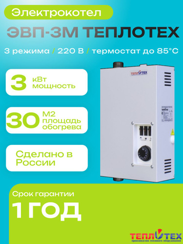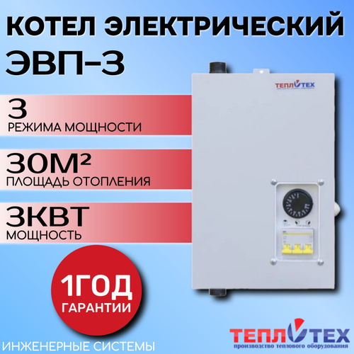 Котел электрический Теплотех ЭВП-3 3 кВт для отопления дома 30 м , 220 В