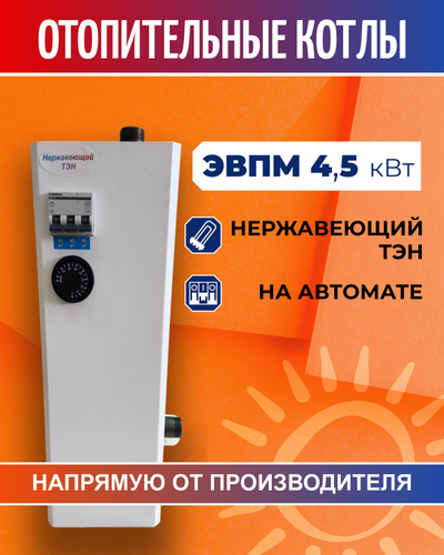 Электрокотел отопления ЭВПМ 4,5 квт ТЭН из нержавеющей стали
