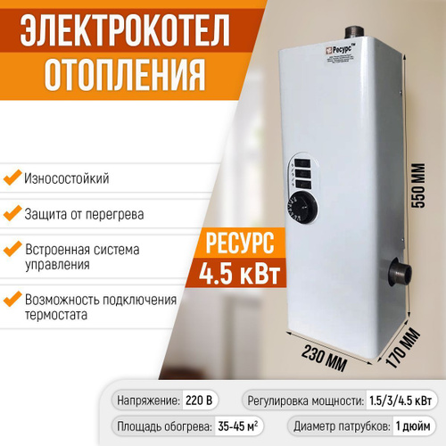 Электрический котел отопления Ресурс ЭВПМ-4,5 4,5кВт