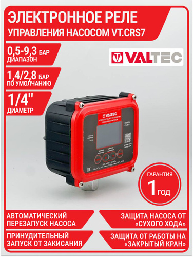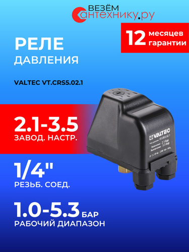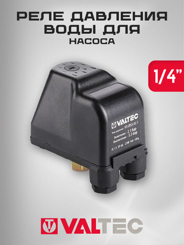 Реле давления воды для насоса 1/4" вн.р. 1-5,3 бар VALTEC 220В / Устройство для настройки включения и выключения насосного оборудования, защиты от перегрева электродвигателя VT.CRS5.02.1