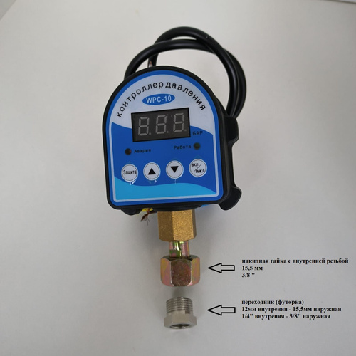 реле ,контроллер давления с электронным,цифровым дисплеем 15,5мм +переходник на 12мм