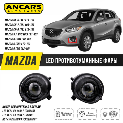 Фары противотуманные LED ANCARS Light серия GTJ-2 Mazda 3 BL, BM, 6 GH, GJ, CX-5, CX-7, CX-9.