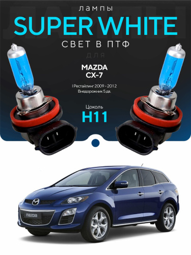 Белый галоген H11 в противотуманные фары для Mazda CX-7 I Рестайлинг 2009 2012 Внедорожник 5 дв.. Лампы в ПТФ на Мазда CX-7