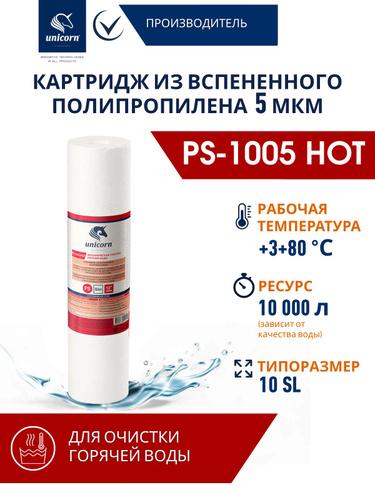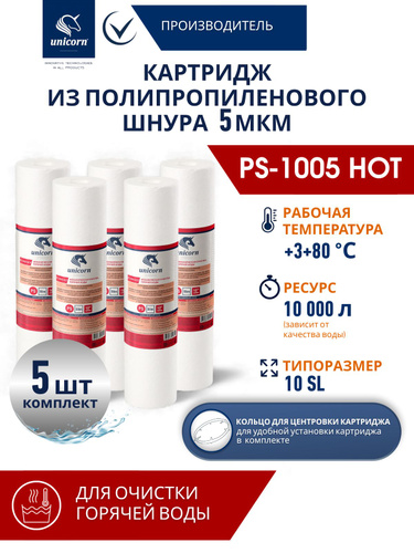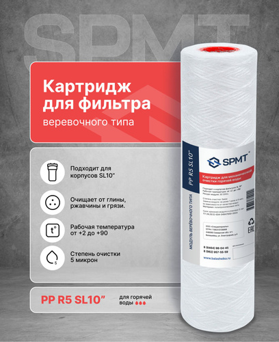 Сменный картридж для фильтра механической очистки воды , веревочного типа в проточные магистральные системы горячей воды, размер SL10 (254ммх63мм), пористость 5мкм, 1шт.