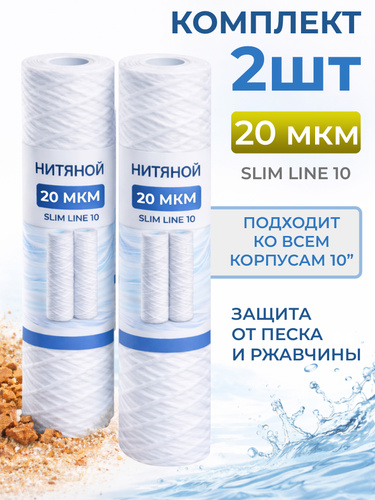Картридж для фильтра воды 10 SL 2 шт, 20 мкм, веревочный, фильтр механической очистки воды от песка и ржавчины