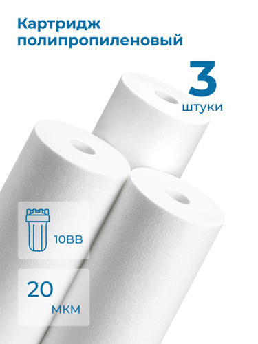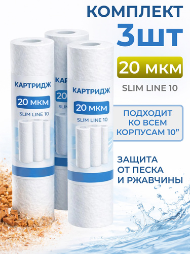 Картридж для фильтра воды 10 Slim Line 3 шт, 20 мкм, полипропиленовый для механической очистки воды