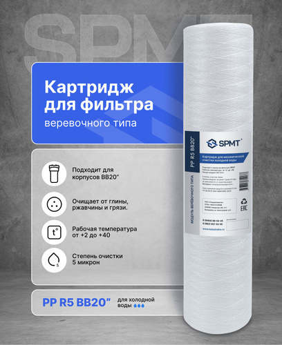 Сменный картридж для фильтра механической очистки воды, веревочного типа в магистральные системы холодной воды, размер BB20 (508ммх112мм), поры 5мкм, 1шт.