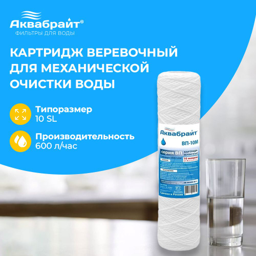 Картридж для фильтра 10 Slim Line веревочный для механической очистки воды / Аквабрайт / ВП-10 М