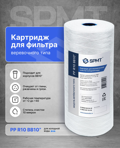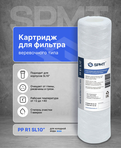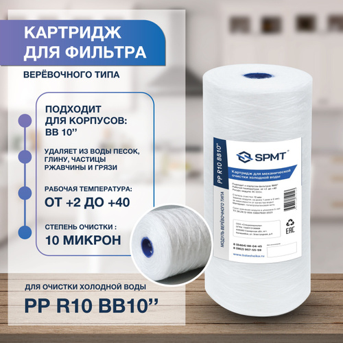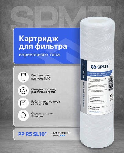 Сменный картридж для фильтра механической очистки воды, веревочного типа в проточные магистральные системы холодной воды, SL10 (254ммх63мм), поры 5мкм, 1шт.