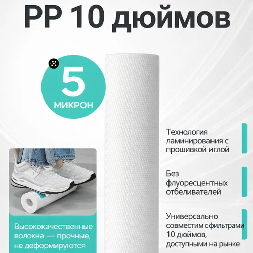 Картридж полипропиленовый Нептун PP-10SL 10 мкм комплект 10 шт, фильтр для механической и грубой очистки холодной и горячей воды от ржавчины, грязи, песка