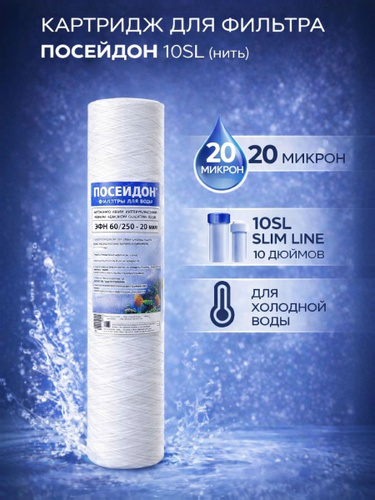 Картридж из полипропиленовой нити 20 мкм Посейдон 10SL ЭФН 60/250 для фильтра механической очистки холодной воды