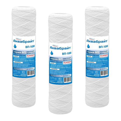 Картридж веревочный 10 Slim Line для фильтра воды (3шт), для механической очистки воды / Аквабрайт / ВП-10 М (3 шт)