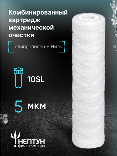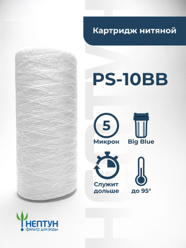 Картридж из полипропиленовой нити Нептун PS-10BB 5 мкм, веревочный фильтр для грубой и механической очистки холодной и горячей воды от ржавчины, грязи, песка