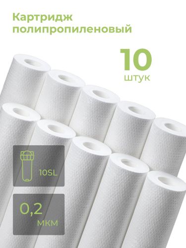 Картридж полипропиленовый Нептун PP-10SL 0,2 мкм комплект 10 шт, фильтр для механической и грубой очистки холодной и горячей воды от ржавчины, грязи, песка