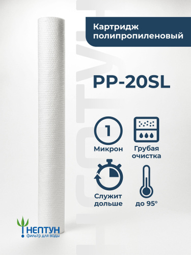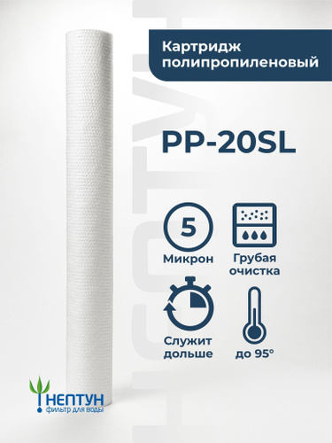 Картридж полипропиленовый Нептун PP-20SL 5 мкм, фильтр для механической и грубой очистки холодной и горячей воды от ржавчины, грязи, песка