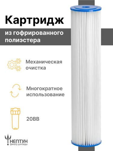 Многоразовый картридж из гофрированного полиэстра Нептун GPS-20BB 10 мкм, промывной фильтр для механической очистки воды от грязи, песка и ила