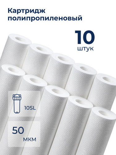 Картридж полипропиленовый Нептун PP-10SL 50 мкм комплект 10 шт, фильтр для механической и грубой очистки холодной и горячей воды от ржавчины, грязи, песка