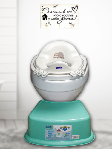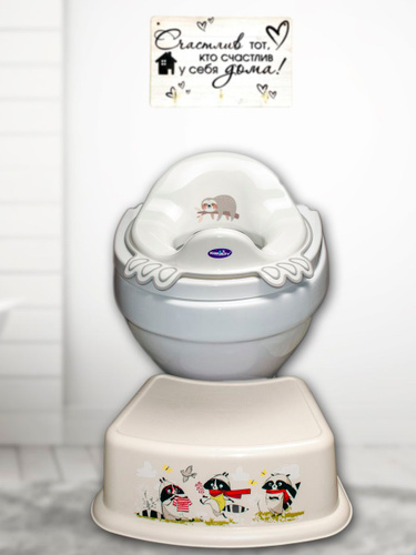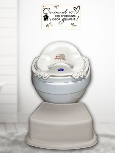 НАКЛАДКА НА УНИТАЗ ДЕТСКАЯ С лапками бежевая +подставка детская (серая)