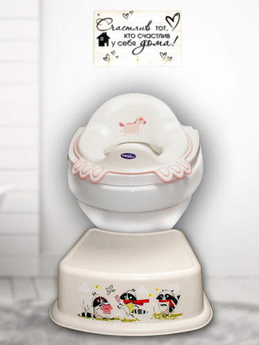 НАКЛАДКА НА УНИТАЗ ДЕТСКАЯ С лапками розовая +подставка детская (бежевая)