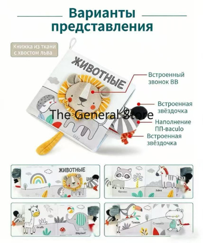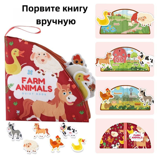 Мягкая тканевая развивающая книжка для малышей с яркими картинками и шуршащими элементами
