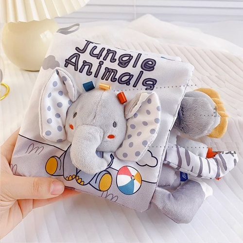 Книжка из ткани с хвостом животного и бумажной погремушкой, моющиеся и жевательные развивающие игрушки для раннего обучения