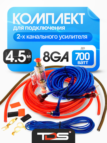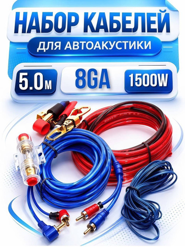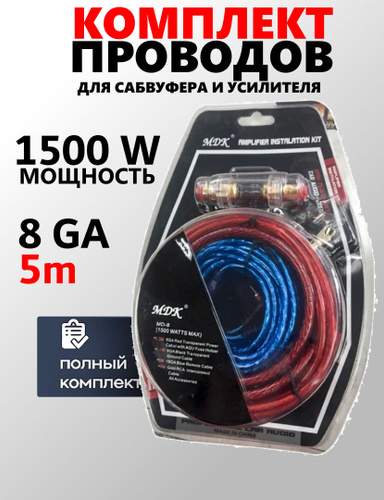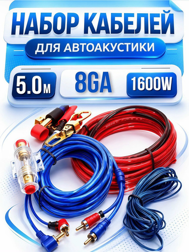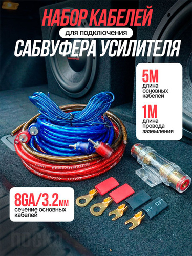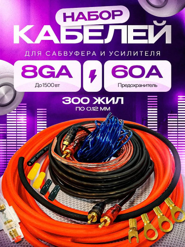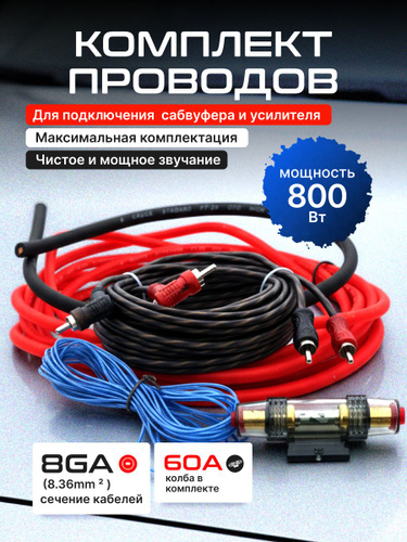 Провода для сабвуфера и для усилителя 8GA 4 канал комплект для автоакустики - для установки 4-х канального усилителя для саба.