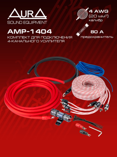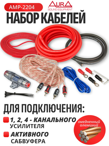 Комплект проводов для усилителя / набор для подключения сабвуфера в машину 2х20мм2, AurA AMP-2204
