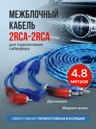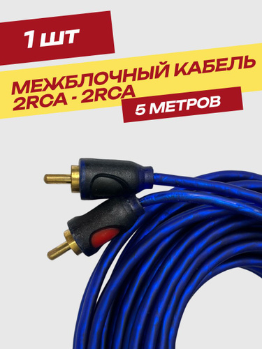 Межблочный кабель 2RCA 5м для авто, провода тюльпаны для сабвуфера и усилителя синий