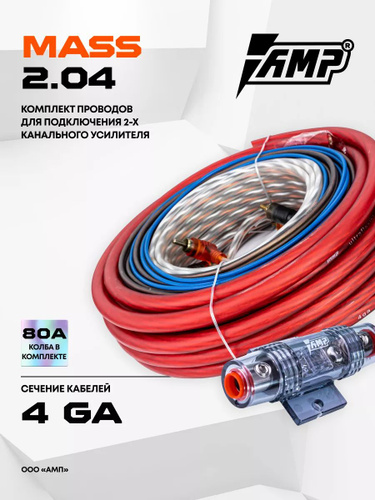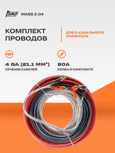 Провода комплект AMP MASS 2.04 (CCA) для 2х канального усилителя