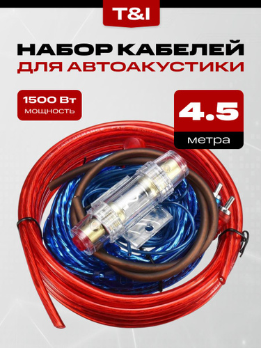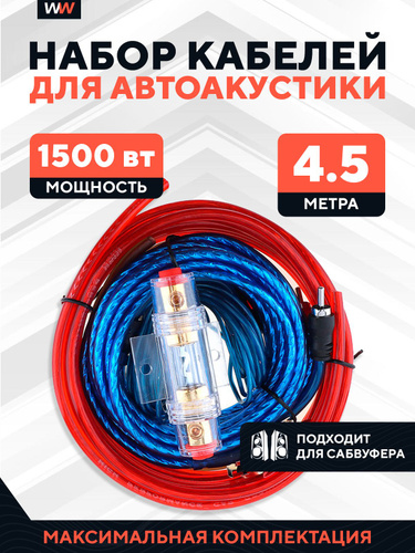 Монтажный комплект акустических проводов для подключения усилителя звука и сабвуфера в автомобиль