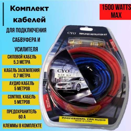Комплект акустических проводов для подключения 4х канального усилителя, сабвуфера, CYO BL-6 4 RCA