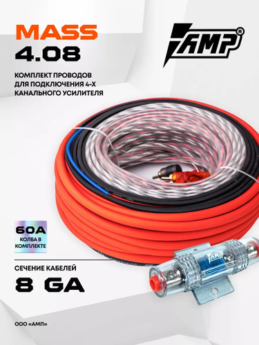 Провода комплект AMP MASS 4.08 (CCA)/ для 4х канального усилителя