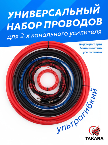 Набор проводов TAKARA KIT-1280 для подключения усилителя / Комплект кабелей для усилителя / Набор кабелей для автоакустики