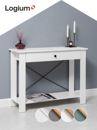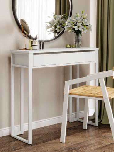 Туалетный столик консольный напольный с ящиком лофт Савуто белый/белый