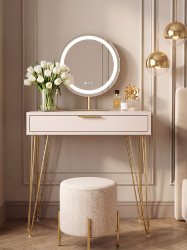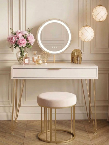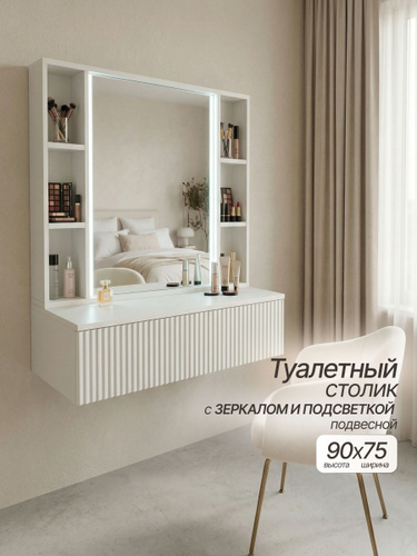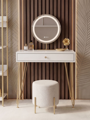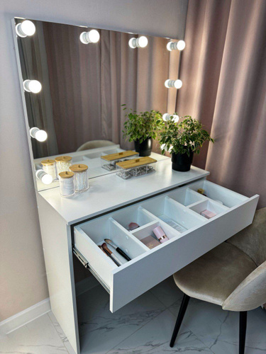 Туалетный столик, Гримерное зеркало с подсветкой и консолью 80х90х35, цвет Белый